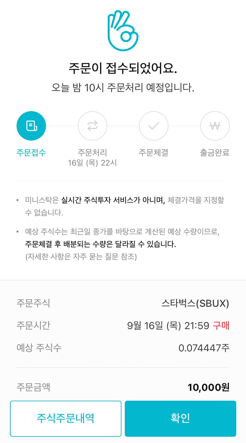 계좌를 개설하면서 설정해둔 비밀번호를 입력하면 주문하는 화면이 나오고 최종적으로 주문 의사를 확인하게 됩니다.