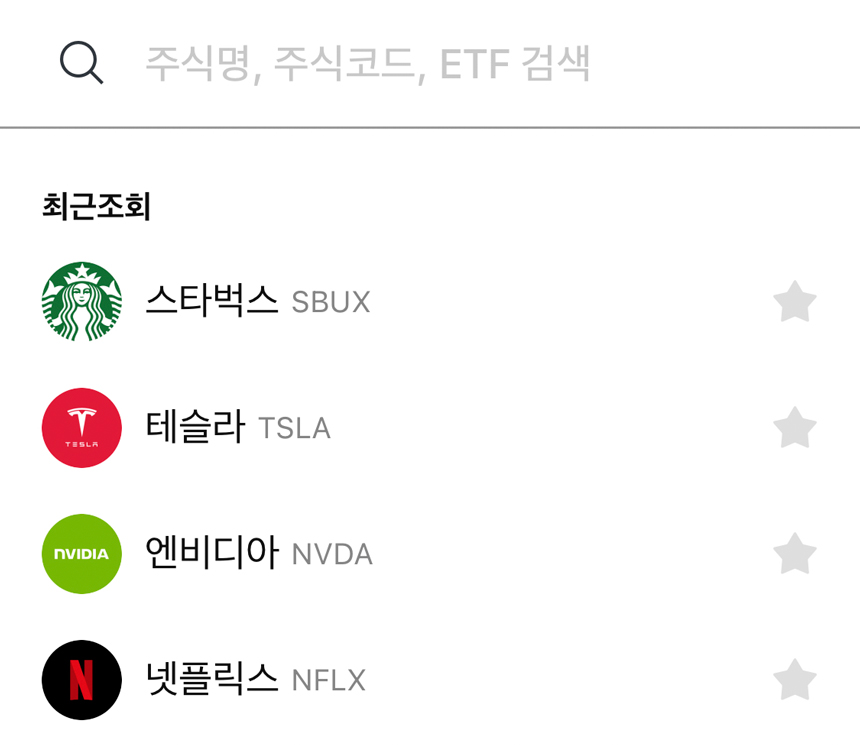 증권사 MTS와는 다른 레이아웃을 가지고 있고 다른 시스템으로 운영되고 있는 것을 볼 수 있습니다. 주식 종목을 선택하기 위해서는 돋보기 모양의 검색을 눌러줍니다.