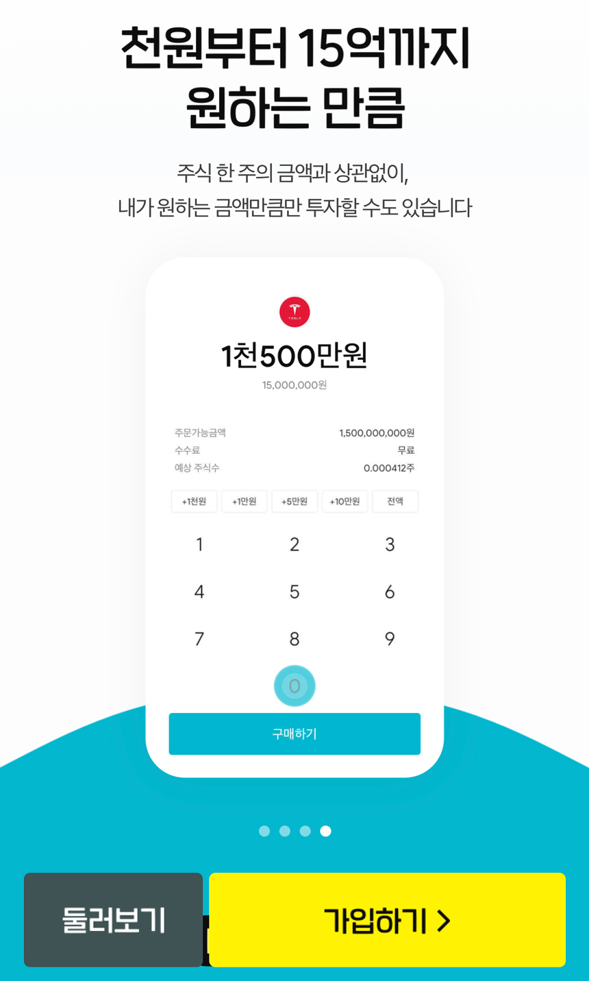 기존 증권사의 해외주식 계좌는 최소 구매 단위가 1주라서 비싼 미국 주식을 매매하기에 부담이 있을 수 있었습니다. 하지만 지금 소개드리는 한국투자증권과 카카오뱅크가 제공하는 해외주식투자는 최소 매수 단위가 천 원입니다. 그래서 만원으로 애플 주식도 매수하고 테슬라 주식도 매수할 수 있습니다. 그 외 원하는 미국 주식을 더 담을 수도 있죠.
