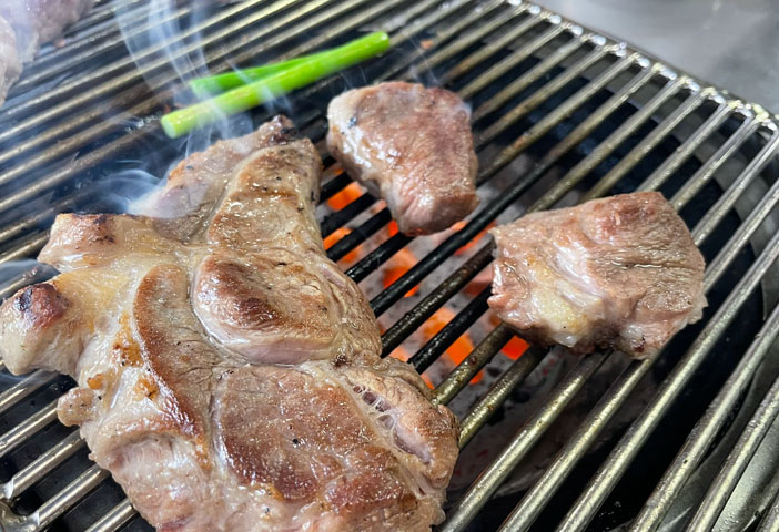 초반이 중요한데 지속적으로 고기를 뒤집거나 움직여줘야 타지 않습니다. 고기가 엄청 두껍기 때문에 한쪽 방향만 불에 향한다면 금방 타버릴 수 있습니다. 고기에 애착이 있는 사람이 집게를 잡고 정성을 다해 구워준다면 환상적인 맛을 맛볼 수 있습니다.
