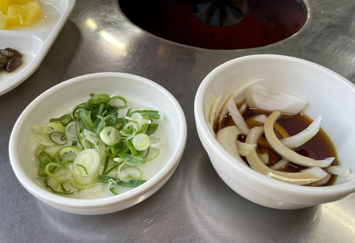 다른 식당과 달리 기본으로 차려지는 음식은 빈약합니다. 하지만 신선하고 맛있습니다. 오히려 고기에 집중하기 더 좋습니다. 다른 고깃집에서는 상추쌈으로 먹는 게 맛있는데 여기는 고기 단독으로 먹는 게 더 맛있습니다. 그만큼 고기 질이 좋은 거겠죠?