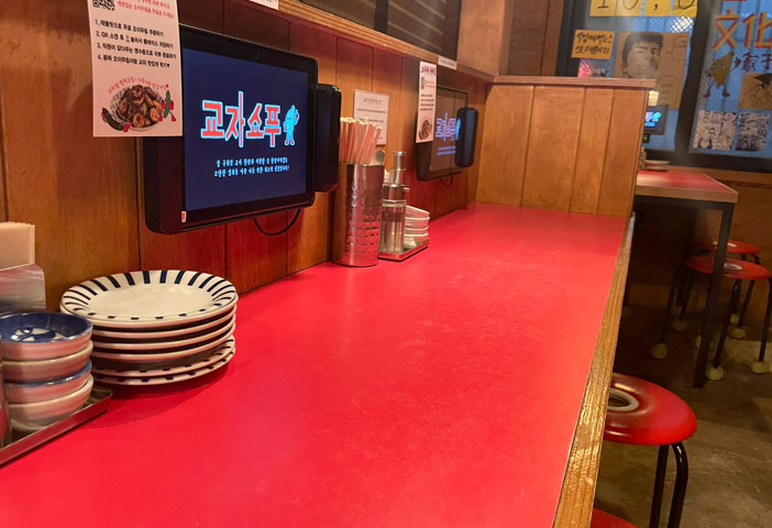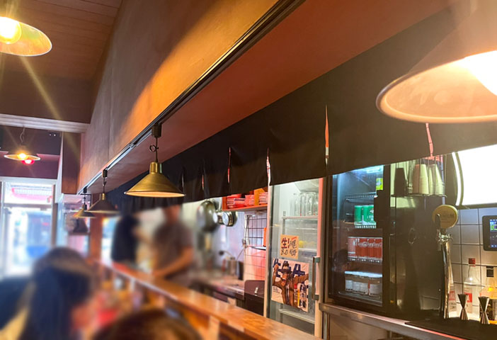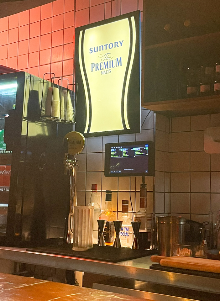 가게는 크지 않습니다. 실내에는 바형식의 테이블이 있고 밖에는 일반 테이블이 있습니다. 가게 분위기는 일본 느낌이 상당히 많이 납니다. 디테일 한 부분까지 신경 쓴 게 느껴집니다. 조명의 색깔과 조도 같은 부분을 신경 많이 쓴 거 같습니다.